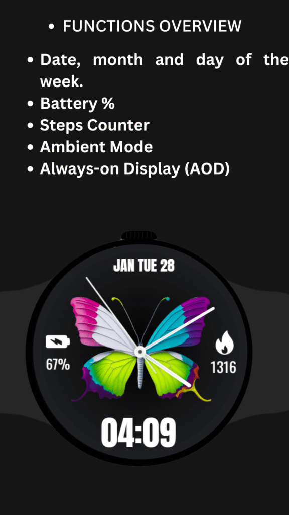 Smartwatches are no longer just gadgets β they are an extension of your personality. The watch face you choose says a lot about your style. If you love vibrant colors, elegant design, and functional simplicity, the Butterfly Watch Face for Wear OS is designed just for you.